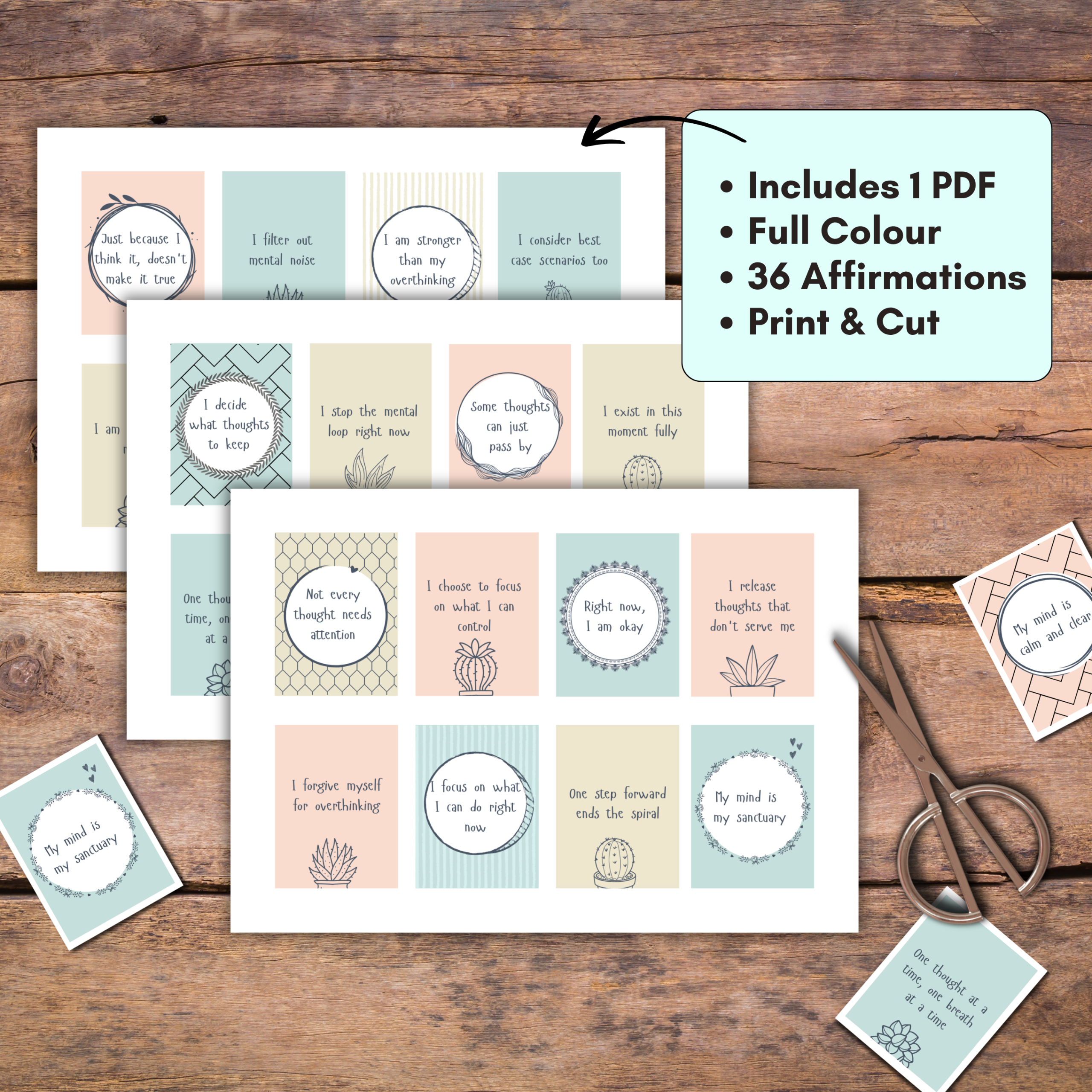 - 36 affirmation cards focused on overthinking and mental clarity