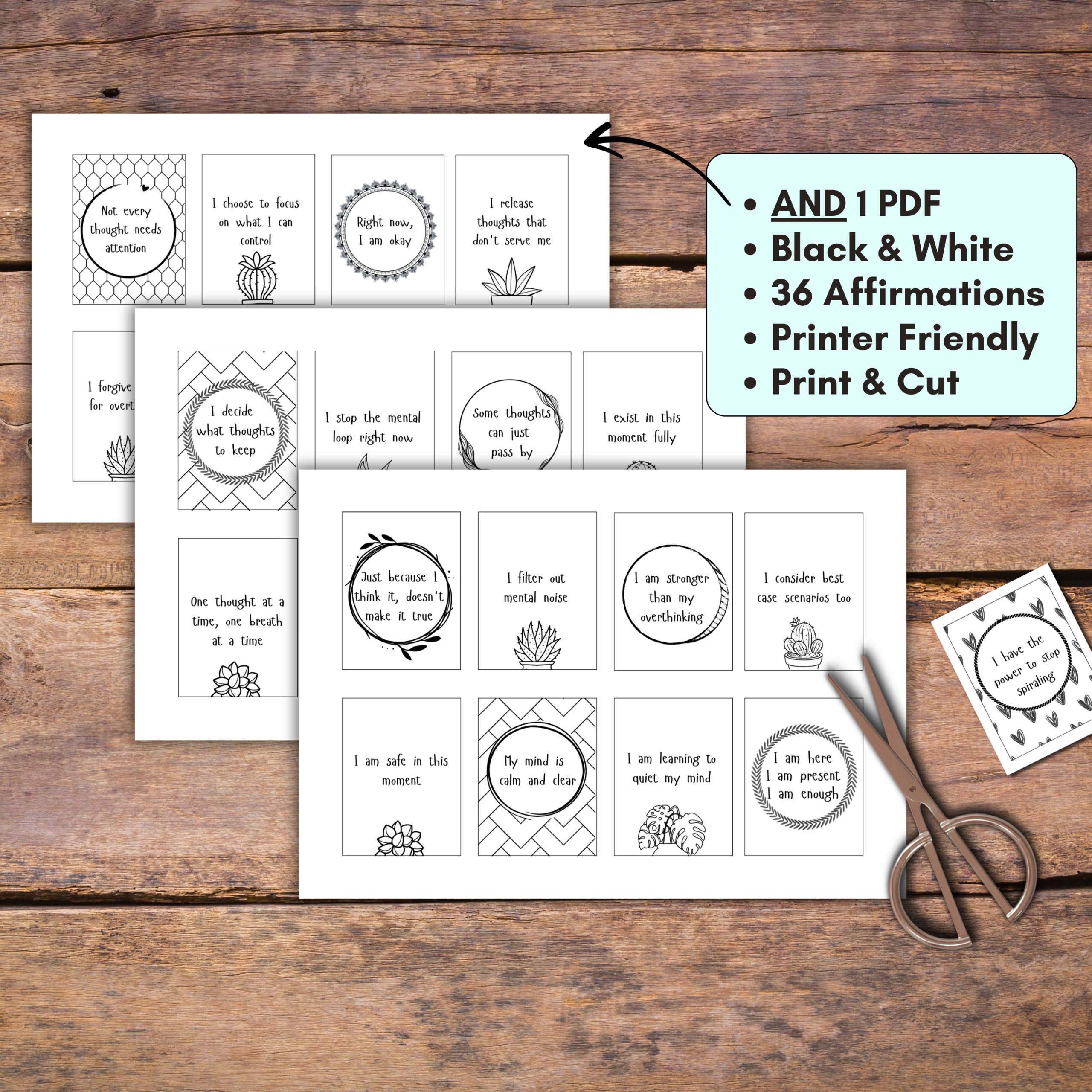How to Stop Overthinking: Printable Affirmation Cards for Anxiety and Mental Clarity